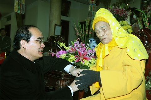 Nguyên Thiên Nhân a adressé ses vœux de santé au vénérable Thich Pho Tuê, qui a 100 ans cette année.