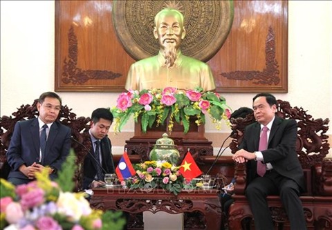 | Le président du FPV Trân Thanh Mân (droite) reçoit le président du FENL Saysomphone Phomvihane. |
