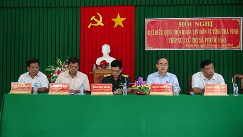 | Nguyên Thiên Nhân (2e à droite), lors d'une rencontre avec l’électorat à Trà Vinh, le 26 novembre. |