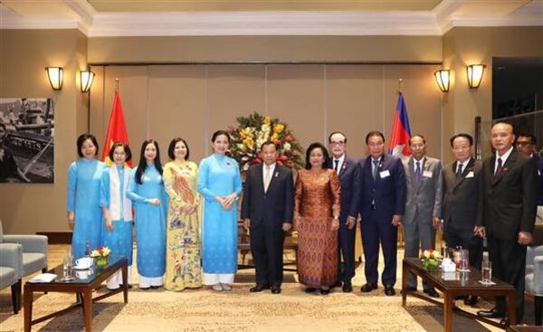 Le président du Sénat du Cambodge, Samdech Say Chhum, a également rencontré et travaillé avec le secrétaire du Comité du Parti de la ville de Hanoï, Dinh Tiên Dung, la présidente de l’Union des femmes vietnamiennes Hà Thi Nga.