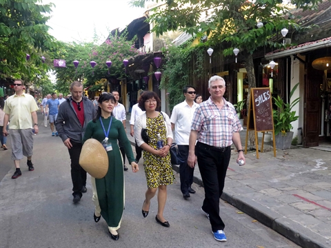 | Le président du Sénat tchèque Milan Stech (droite, 1er plan) visite l'ancienne cité de Hôi An, dans la province de Quang Nam. |
