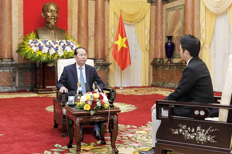 | Le président vietnamien Trân Dai Quang (gauche) accorde une interview à des médias japonais. |
