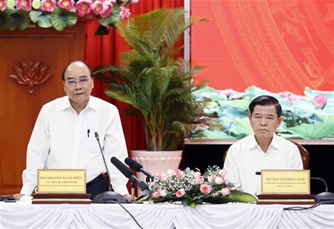 | Le président de la République, Nguyên Xuân Phuc, s'exprime lors d'une séance de travail à Dông Nai (Sud), le 2 août. |