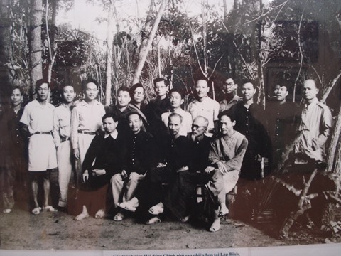 | Les membres du Conseil du gouvernement après une réunion tenue en 1948 dans le hameau de Lâp Binh, commune de Binh Yên, district de Son Duong, province de Tuyên Quang (Nord). |
