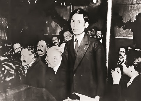 | Fin 1920, le Président Hô Chi Minh (debout) participa au XVIIIe Congrès de Tours (France), en qualité de seul délégué officiel des pays colonisés de l’Indochine. |