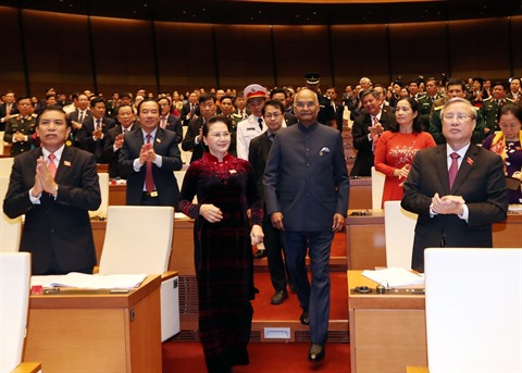 | Nguyên Thi Kim Ngân et Ram Nath Kovind à la séance plénière de la 6e session de l’Assemblée nationale, le 20 novembre. |