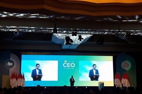 | Le président indonésien Joko Widodo s'exprime lors de l'événement. |