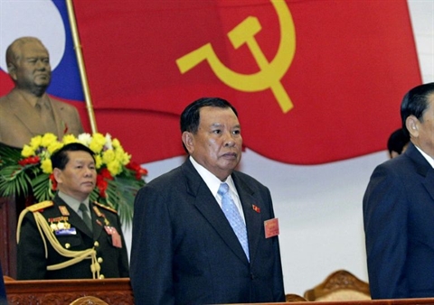 | Le secrétaire général du Parti populaire révolutionnaire et le président du Laos, Bounnhang Vorachit. |