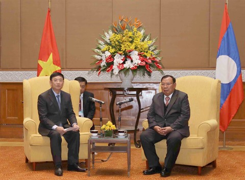 | Le secrétaire général du Parti populaire révolutionnaire du Laos et président lao Bounnhang Vorachith (gauche), et Trân Van Tuy, président du Comité central de l’Association d’amitié Vietnam-Laos. |