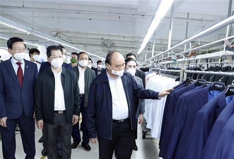 Avant le colloque, le président Nguyên Xuân Phuc a visité la compagnie par actions de textile 29 Mars, une unité qui réussit à s’adapter à la nouvelle normalité et à développer la production face aux difficultées liées à l’épidémie de COVID-19.