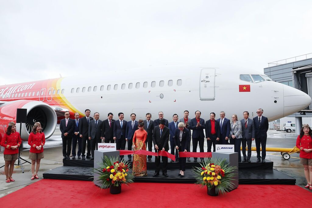 Cet événement, qui coïncide avec le 30e anniversaire de la normalisation des relations Vietnam - États-Unis, constitue non seulement une étape importante dans la coopération entre Vietjet et Boeing, mais aussi une illustration vivante du partenariat stratégique global entre les deux pays.Vietjet a officiellement réceptionné son premier Boeing 737-8 dans le cadre d’une commande de 200 appareils d’une valeur de 25 milliards de dollars avec Boeing.