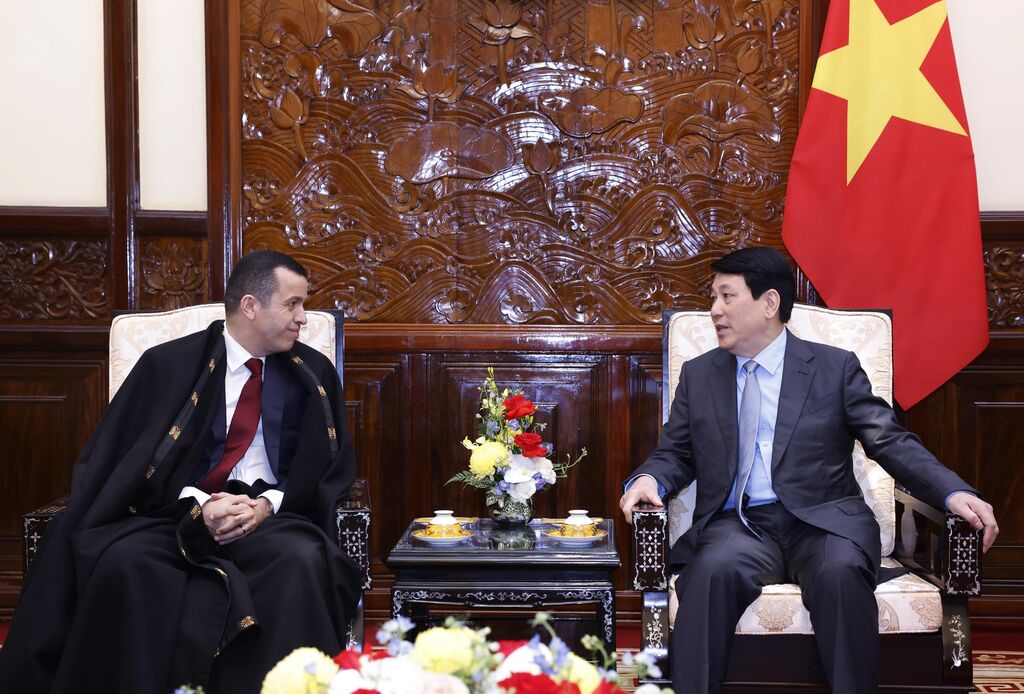 Lors de sa réception d’Azeddine Bechka, ambassadeur d’Algérie au Vietnam, le président Luong Cuong a affirmé que le Vietnam attachait de l'importance aux relations traditionnelles et à la coopération d'amitié avec l'Algérie, partenaire d'amitié traditionnel le plus continu et le plus profond du Vietnam en Afrique.