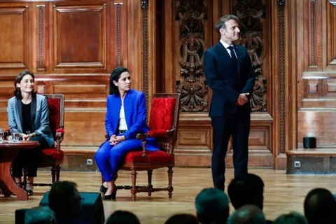 | Le président français Emmanuel Macron à la Sorbonne à Paris, le 25 août. |