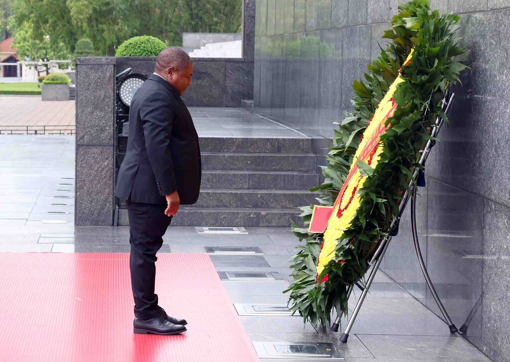 | Le président Filipe Jacinto Nyusi a rendu hommage au Président Hô Chi Minh dans son mausolée. |