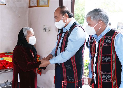 À cette occasion, au nom du FPV et des donateurs, le président a remis 7,3 milliards de dôngs (322.500 USD) aux districts de Dông Giang et Tây Giang pour construire 100 maisons pour des personnes dans le besoin. Il a également rendu visite et offert des cadeaux à plusieurs ménages pauvres, à des bénéficiaires des politiques sociales et à la Mère héroïne Trân Thi Gioi dans le village de Ban Mai de la commune de Ba.