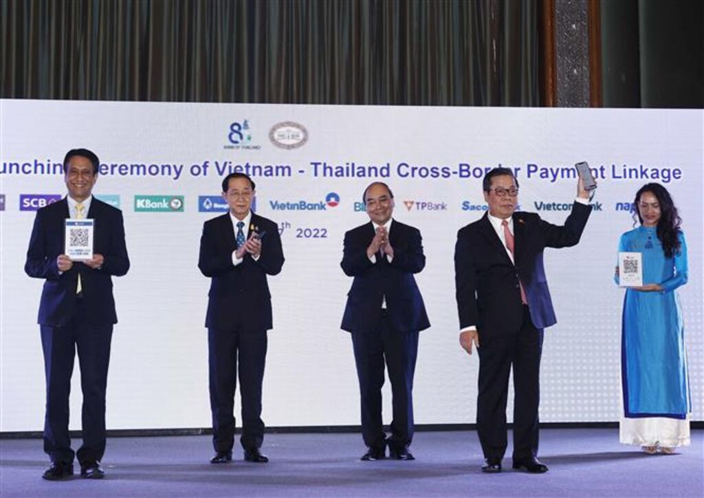 | Le président Nguyên Xuân Phuc (centre) au lancement du service de paiement transfrontalier par code QR entre le Vietnam et la Thaïlande. |