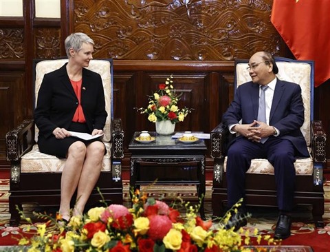 | Lors de la rencontre entre l’ambassadrice norvégienne Hilde Solbakken et le président vietnamien Nguyên Xuân Phuc. |