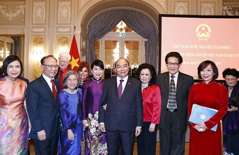 | Le président Nguyên Xuân Phuc (au milieu) pose avec les représentants d’associations, d’organisations d’amitié et de la communauté vietnamiennes en Suisse. |