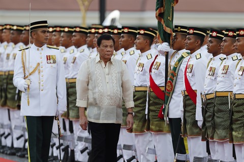 | Le président philippin Rodrigo Duterte en Malaisie, le 10 novembre. |