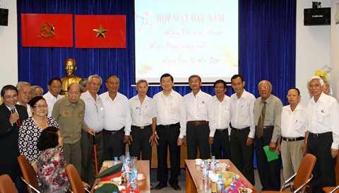 | Le président de la République Truong Tân Sang (7e à droite) a rencontré le 22 février à Hô Chi Minh-Ville d'anciens prisonniers révolutionnaires. |