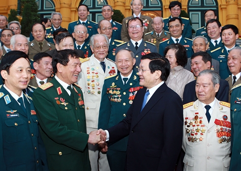 | Le président Truong Tân Sang a reçu le 28 décembre à Hanoi des anciens combattants de l’armée de l’air et de la défense anti-aérienne. |