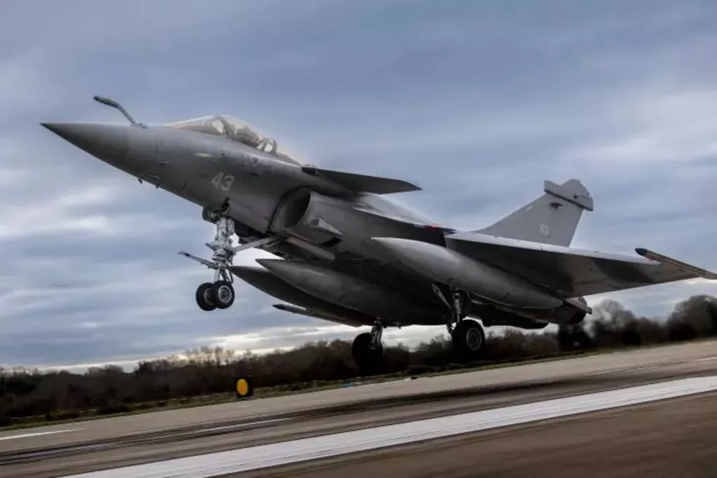 | Un avion de combat français Rafale à la base aérienne de la Marine nationale de Lann-Bihoue à Queven, dans l'Ouest de la France, le 12 janvier 2024. |