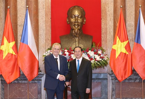 | Le président tchèque Milos Zeman (gauche) et son homologue vietnamien Trân Dai Quang. |