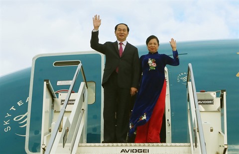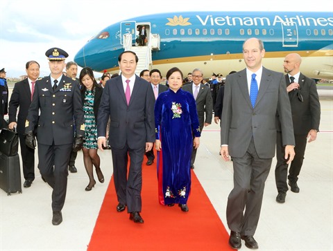 Le président Trân Dai Quang est accompagné par le vice-Premier ministre et ministre des Affaires étrangères Pham Binh Minh, le ministre de l’Industrie et du Commerce Trân Tuân Anh, et d'autres.