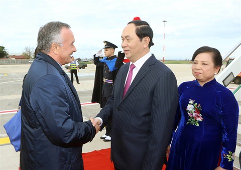 | Les représentants du gouvernement italien accueille le président Trân Dai Quang. |