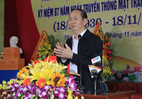 | Le président Trân Dai Quang lors de la fête de grande union nationale de la commune de Tân Hung, du district de Lang Giang, province de Bac Giang, le 14 novembre. |