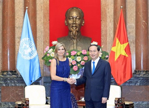 Dans cet esprit, le président Trân Dai Quang a suggéré à la reine Máxima, en sa qualité de représentant des Pays-Bas et d’envoyé spécial du secrétaire général de l'ONU sur la finance inclusive pour le développement, d’aider le Vietnam à mobiliser les ressources financières et techniques de l'ONU et d'autres organisations internationales pour assister le Vietnam dans l’élaboration et la promulgation de la stratégie de finance inclusive et partager l'expérience avec le pays.