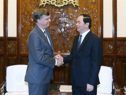 | Le président du Vietnam, Trân Dai Quang (droite), et l'ambassadeur d'Australie, Hugh Borrowman, le 26 mai à Hanoi. |