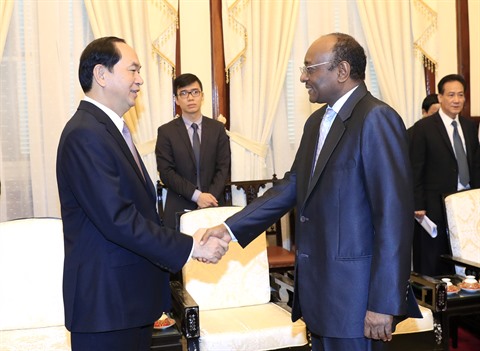 En recevant jeudi 25 mai à Hanoï l’ambassadeur soudanais Sayed Altayed Ahmed, venu le saluer au terme de son mandat au Vietnam, Trân Dai Quang a exprimé sa satisfaction devant le développement heureux des relations bilatérales lors du mandat de celui-ci, avant d’apprécier ses contributions au développement de l’amitié et de la coopération multiforme entre les deux pays. Il a salué les résultats de la 2e réunion du Comité mixte Vietnam - Soudan d'octobre 2016 à Hanoï, demandant au Soudan de travailler en coordination étroite dans la mise en œuvre des accords convenus lors de cette réunion.