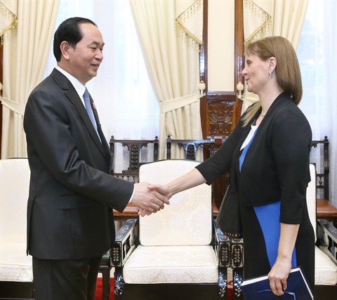 | Le président Trân Dai Quang et l'ambassadrice d'Israël au Vietnam, Meirav Eilon Shahar, |
