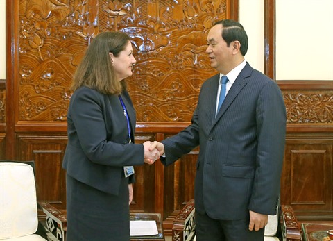 | Le président du Vietnam Trân Dai Quang a reçu le 9 décembre à Hanoi Mme Monica Whaley, présidente du Centre national APEC États-Unis. |