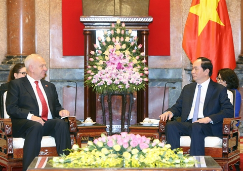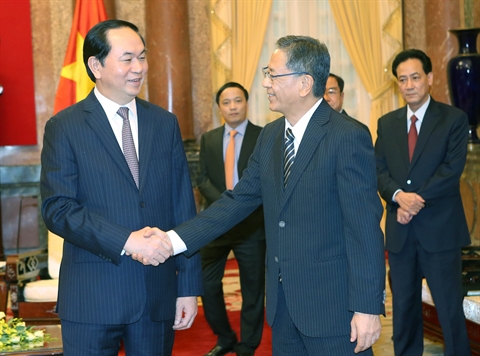| Le président Trân Dai Quang (gauche) reçoit l’ambassadeur du Japon, Hiroshi Fukada, le 19 avril à Hanoi. |