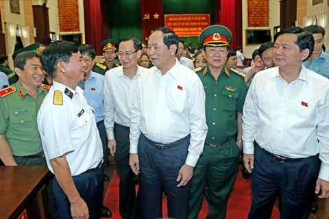 | Le président Trân Dai Quang (centre) rencontre le 11 décembre des électeurs militaires de Hô Chi Minh-Ville. |