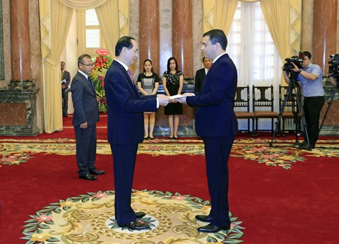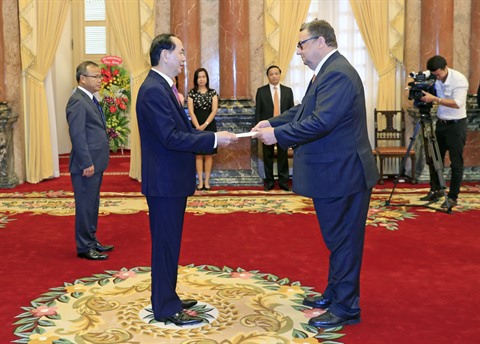 Lors de la réception de l'ambassadeur israélien, Nadav Eshcar, le chef de l’État vietnamien a demandé de renforcer les échanges des délégations de tous les échelons, déployer des résultats de la visite du président israélien au Vietnam ainsi que des résultats de la 2e session du Comité intergouvernemental Vietnam - Israël tenue en juillet dernier à Tel Aviv et coordonner l’organisation des activités pratiques et significatives pour célébrer les relations diplomatiques entre les deux pays en 2018.