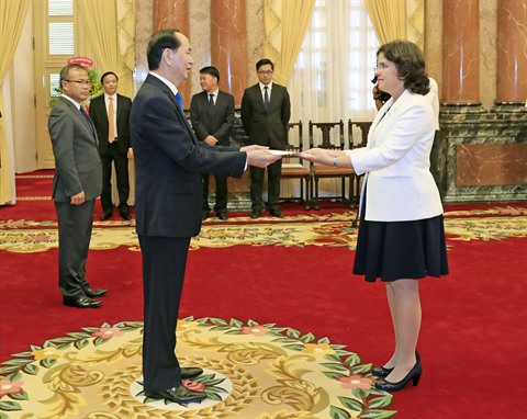 | L’ambassadrice de Cuba au Vietnam, Lianys Torres Rivera, et le président Trân Dai Quang. |