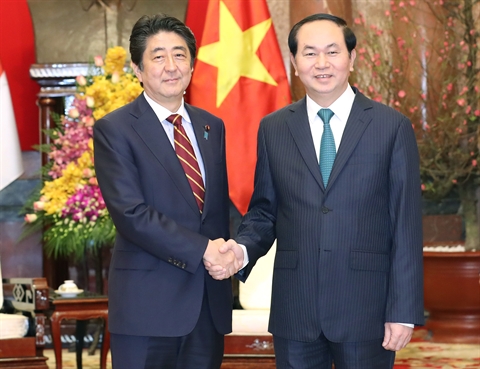 | Le président vietnamien Trân Dai Quang (droite) et le Premier ministre japonais Shinzo Abe, le 16 janvier à Hanoï. |