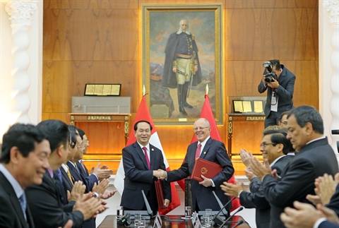 | Trân Dai Quang (droite) et Pedro Paplo Kuczynsky, le 18 novembre au Pérou. |