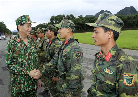 | Le président de la République, Trân Dai Quang (gauche), rend visite aux soldats au centre d’entrainement de Miêu Môn, le 17 octobre à Hanoï. |