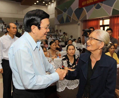 | Le président du Vietnam, Truong Tân Sang (gauche) rencontre les électeurs du 4e arrondissement, le 25 avril à Hô Chi Minh-Ville. |