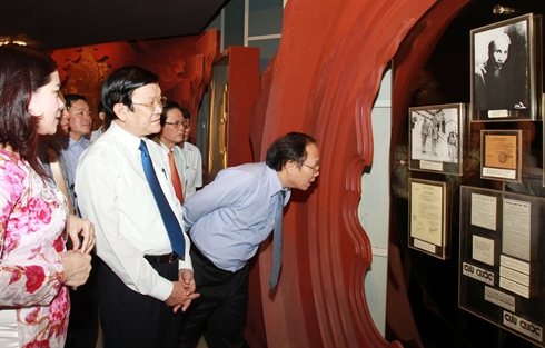 | Le président de la République, Truong Tân Sang (premier plan, centre); a vissité le 15 mai le musée de Hô Chi Minh à Hanoi. |