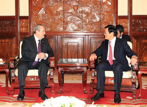 | Le président Truong Tân Sang (droite) reçoit l'ambassadeur du Guatemala, A. Lopez Calderon, le 17 septembre à Hanoi. |