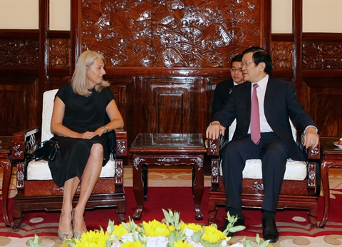 | Le président Truong Tân Sang a reçu Mme Charlotte Laursen, ambassadeur du Danemark. |