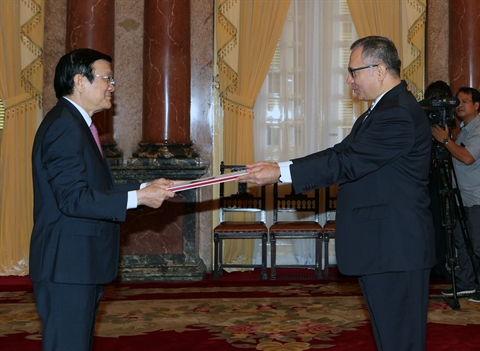 | Le président Truong Tân Sang (gauche) a reçu Akif Ayhan, ambassadeur de la Turquie. |
