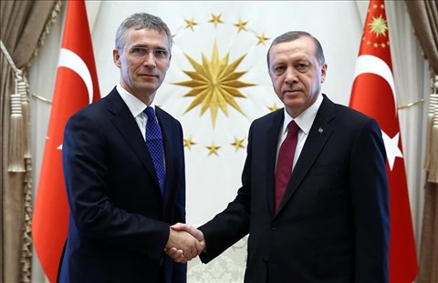 | Le président turc Recep Tayyip Erdogan (droite) et le secrétaire général de l'OTAN, Jens Stoltenberg, en avril 2016 à Ankara. |