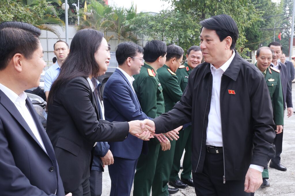 | Le président Luong Cuong rencontre des électeurs du district de Thuong Xuân, province de Thanh Hoa. |