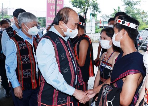 Le président Nguyên Xuân Phuc s'est réjoui des réalisations socio-économiques et de la grande unité nationale réalisées par les comités du Parti, les autorités et le peuple des trois communes, ajoutant que Lai Châu a surmonté une période particulièrement difficile et s'efforce de devenir une province de la classe moyenne dans le région montagneuse du Nord.
